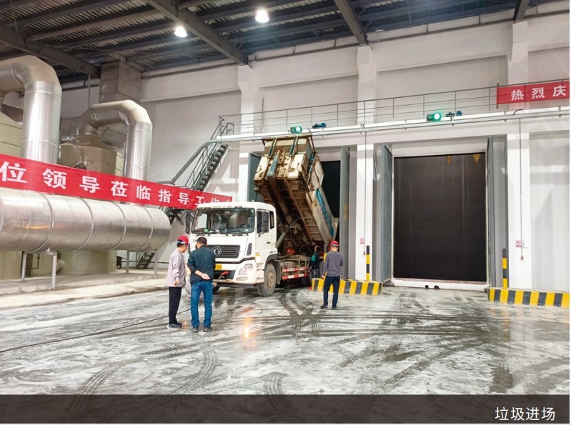 早上8點,項城市生活垃圾焚燒發(fā)電項目現(xiàn)場,首批垃圾清運車身披紅綢球駛?cè)腚姀S,有序經(jīng)過地磅平臺稱重后,在專業(yè)人員的引導(dǎo)下,進入垃圾池棧橋,穩(wěn)穩(wěn)??吭谛读峡?。