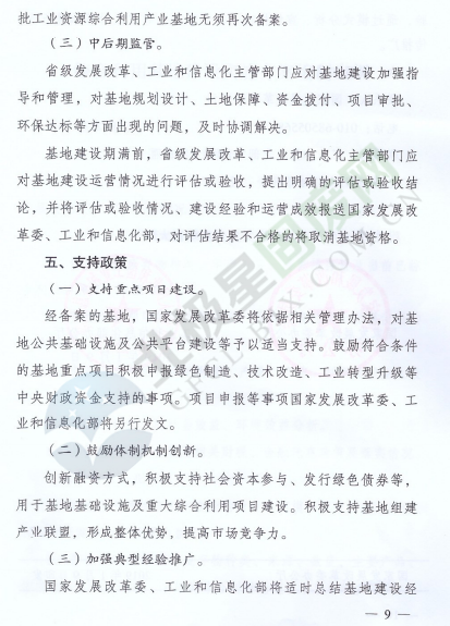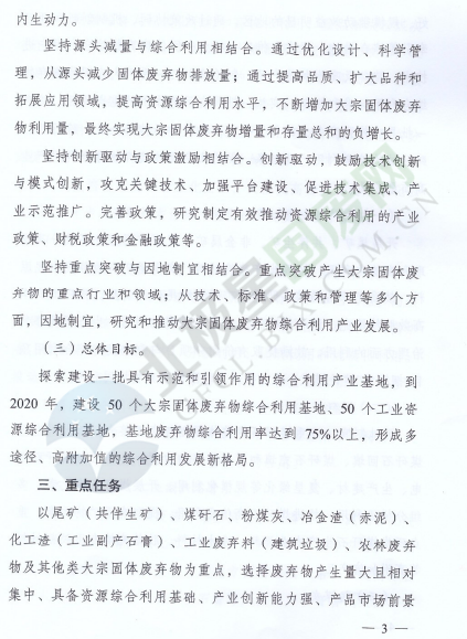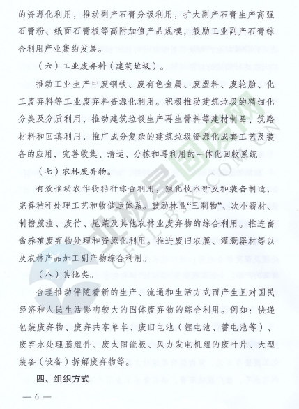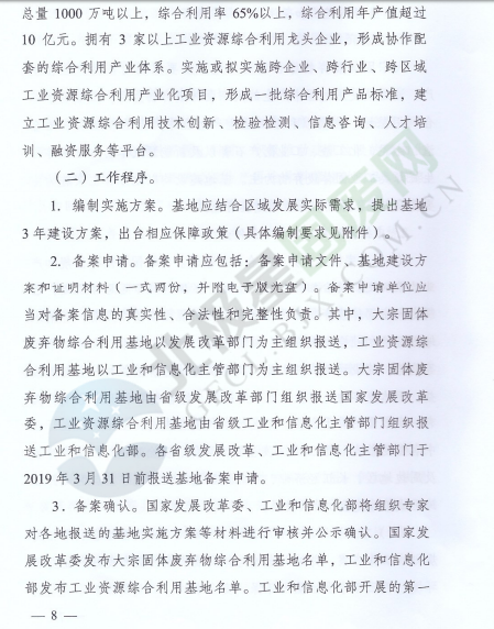 為落實(shí)《中華人民共和國經(jīng)濟(jì)和社會發(fā)展第十三個(gè)五年規(guī)劃綱要》《循環(huán)發(fā)展引領(lǐng)計(jì)劃》和《工業(yè)綠色發(fā)展規(guī)劃》,促進(jìn)產(chǎn)業(yè)集聚,提高資源綜合利用水平,推動資源綜合利用產(chǎn)業(yè)高質(zhì)量發(fā)展,近日,國家發(fā)展改革委辦公廳和工業(yè)和信息化部辦公廳印發(fā)了關(guān)于推進(jìn)大宗固體廢棄物綜合利用產(chǎn)業(yè)集聚發(fā)展的通知。全文如下: