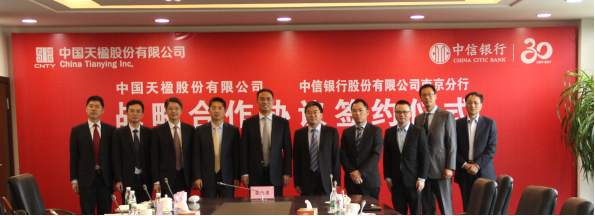 Lu Jingen, Governor of China CITIC Bank Nanjing Branch, said China CITIC Bank highly recognizes China TIANYING Inc. for its achievements in the environmental protection field. He also said that both parties embrace a common value and recognize each other. In the future, China CITIC Bank will fully implement the strategic cooperation thought in such aspects as financing credit, group account cash management, supply-chain finance, investment banking service, financial services, international trade services, asset management services and capital market financing service.